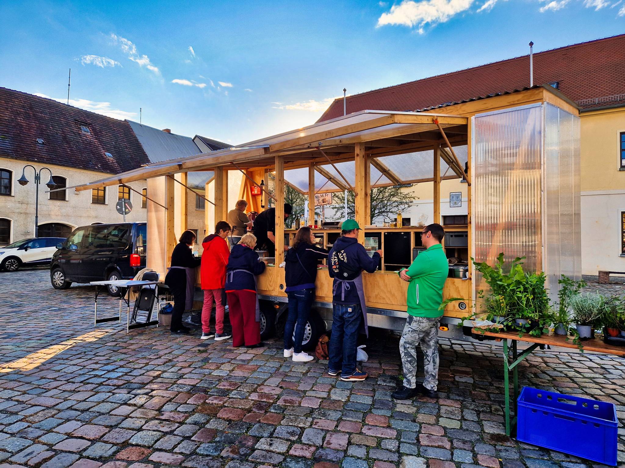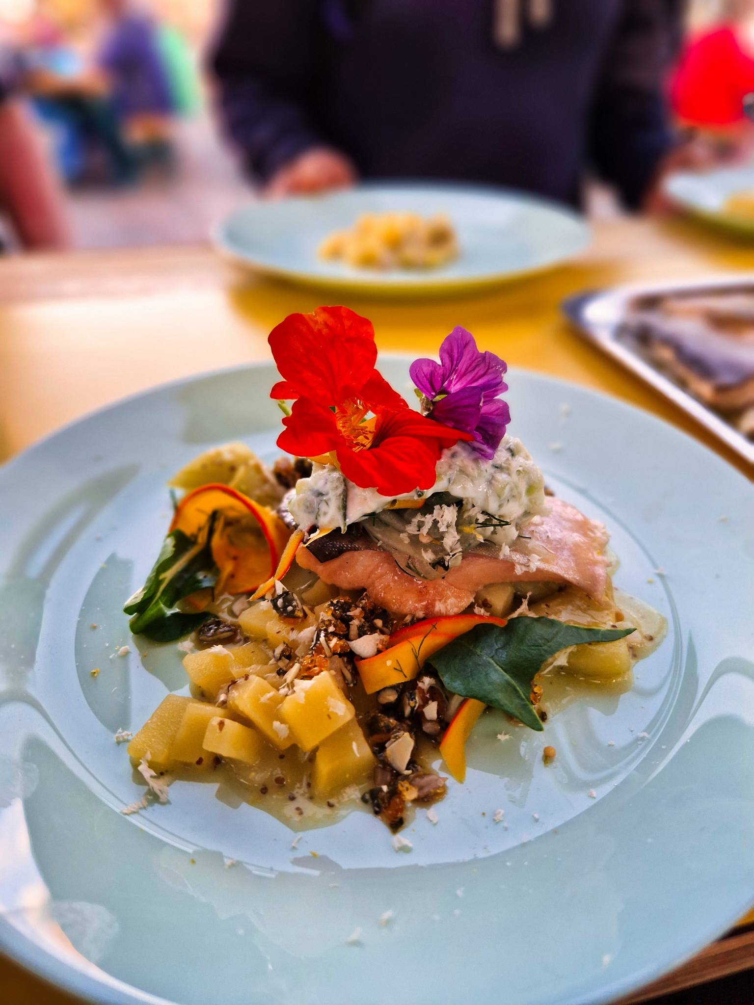 Raimunds Saiblinge und die Tomaten von der Schloßgärtnerei trafen auf die Gaben der Hobbygärtnerinnen und -gärtner, und im KochWerk-Anhänger entstand ein dreigängiges Menü.