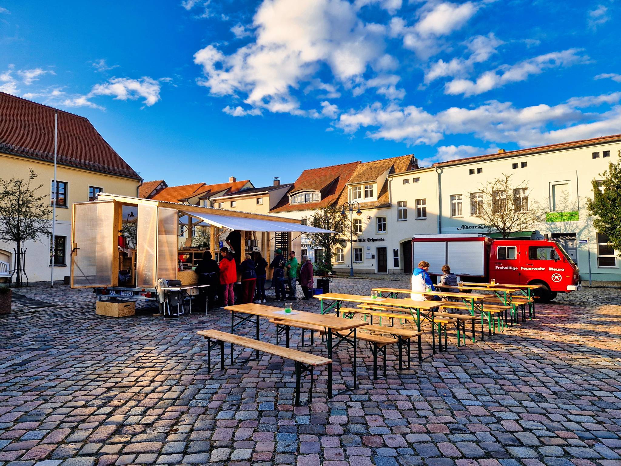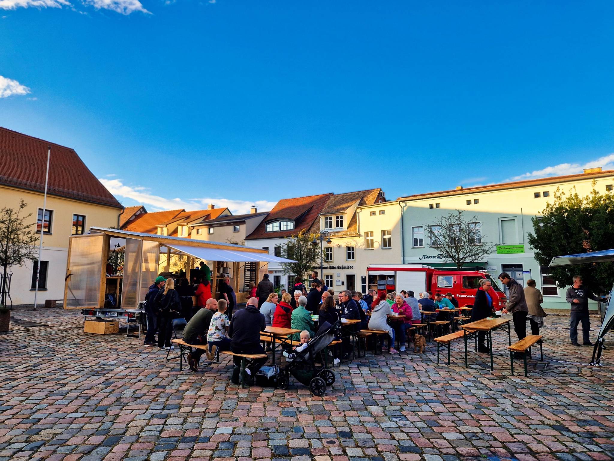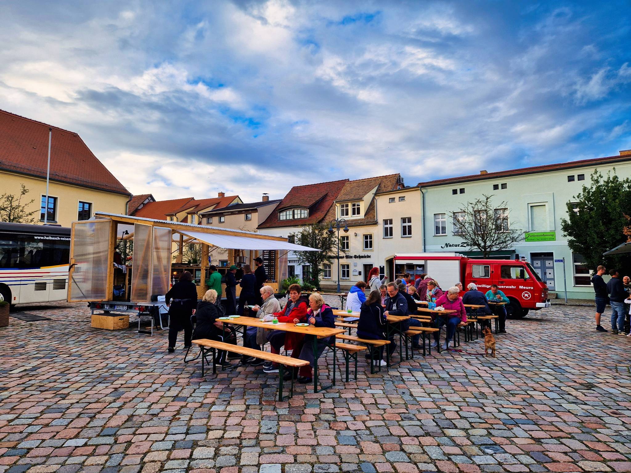 Der Einladung folgten viele – die Tische auf dem Marktplatz füllten sich mit 80 Menschen. Lieberose zeigte an diesem Abend, wie eine Stadt zusammenkommen kann, wenn sie die Einladung annimmt.
