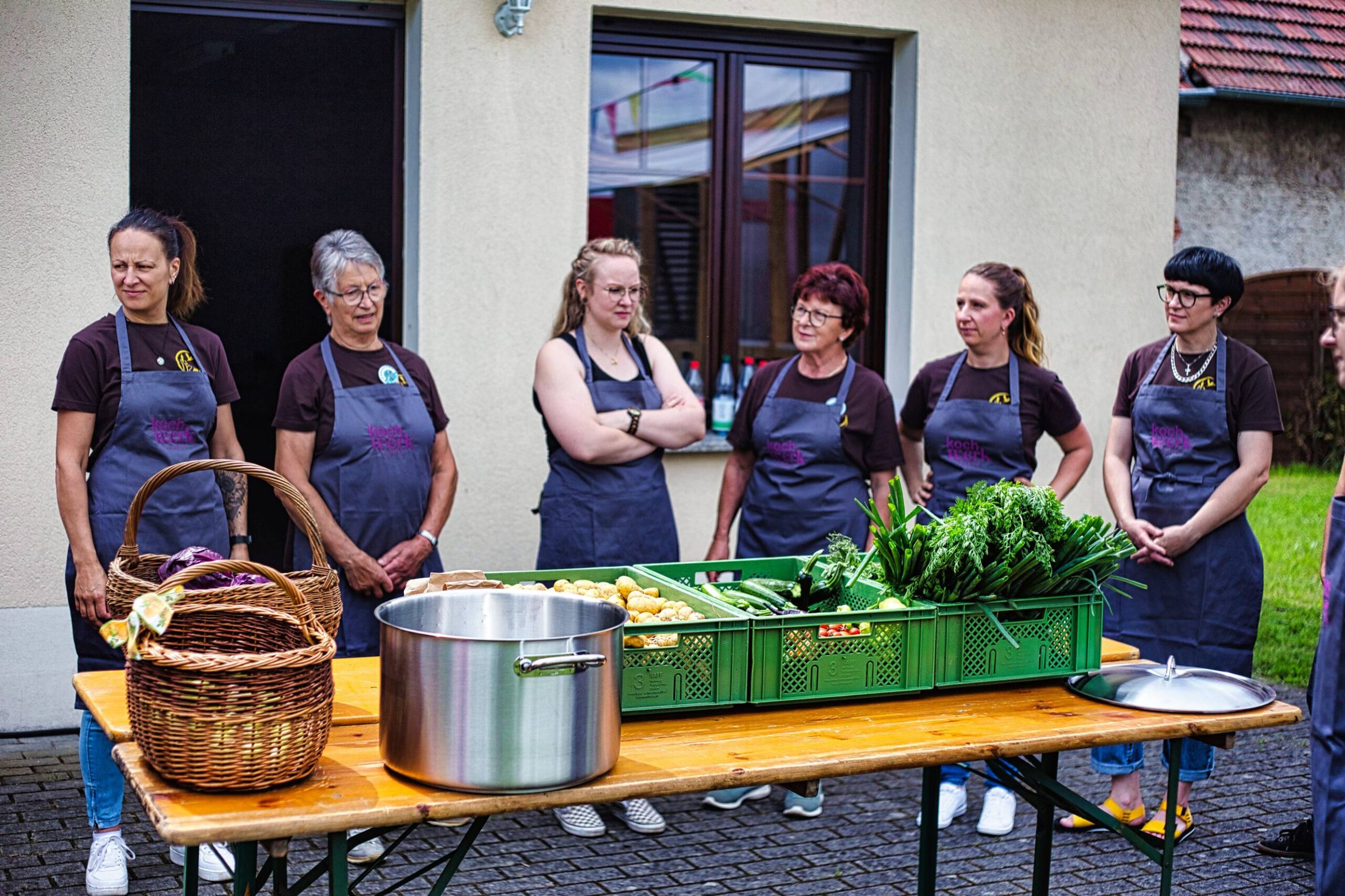 Bei strahlendem Sommerwetter verwandelte sich die Festwiese hinter dem Gemeindezentrum in eine große Tafel. Fünfzig Menschen kamen zusammen – was für ein gelungener Auftakt!